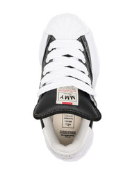 Blakey Original Sole chunky sneakers Maison Mihara Yasuhiro's Original Sole evolved from a clay creation that was hand-moulded by the eponymous designer. A padded leather version defines these Blakey sneakers, which boast a retro basketball-inspired silhouette. Highlights - Black/white - Leather - Padded design - Contrast stitching - Logo print to the side - Logo patch at the tongue - Round toe - Front lace-up fastening - Chunky rubber sole Made in France Composition Leather 100% SIZE & FIT Measurement HEIGHT 3.14 in(8 cm) PLATFORM 1.57 in(4 cm)