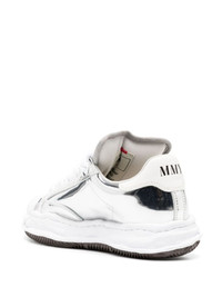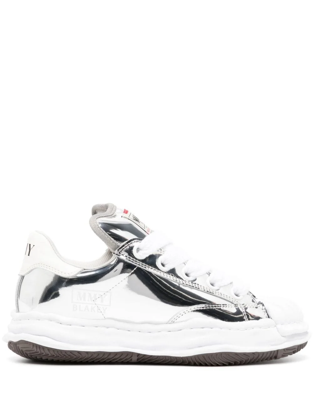Blakey Original Sole chunky sneakers Maison Mihara Yasuhiro's Original Sole evolved from a clay creation that was hand-moulded by the eponymous designer. A padded metallic version defines these Blakey sneakers, which boast a retro basketball-inspired silhouette. Highlights - Silver - White - Leather - Padded design - Metallic finish - Logo print to the side - Logo patch at the tongue - Round toe - Front lace-up fastening - Chunky rubber sole Made in France Composition Leather 100% SIZE & FIT Measurement HEIGHT 3.14 in(8 cm) PLATFORM 1.57 in(4 cm)