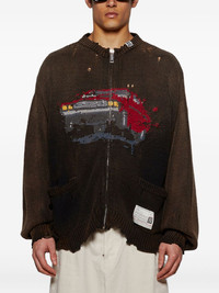 Car distresses cardigan Highlights - Chocolate brown - Front zip fastening - Crew neck - Long sleeves - Ribbed trim Imported Composition Cotton 100%