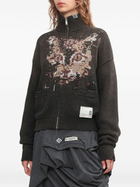 cat-face distressed zip-up cardigan Highlights Imported Composition Cotton 70%, Wool 29%, Acrylic 1%