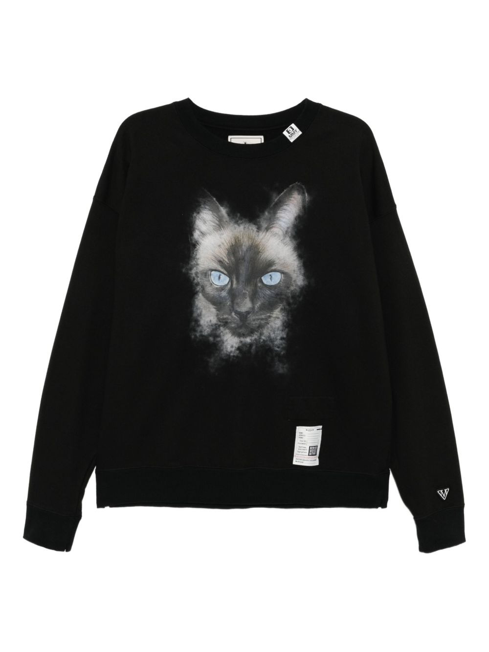 cat-print cotton sweatshirt Highlights - Black - Crew neck - Logo patch at the sleeve - Slogan print to the rear - Ribbed cuffs and hem Imported Composition Body: Cotton 100% SIZE & FIT Model measurements Height 6 ft 2 in(1.87 m) Bust/Chest 33.07 in(84 cm) Hips 35.43 in(90 cm) Waist 26.77 in(68 cm) FittingInformation Designed to be unstructured, offering a loose fit throughout Made from a midweight non-stretch fabric, this piece offers minimal elasticity when worn Washing instructions Machine Wash