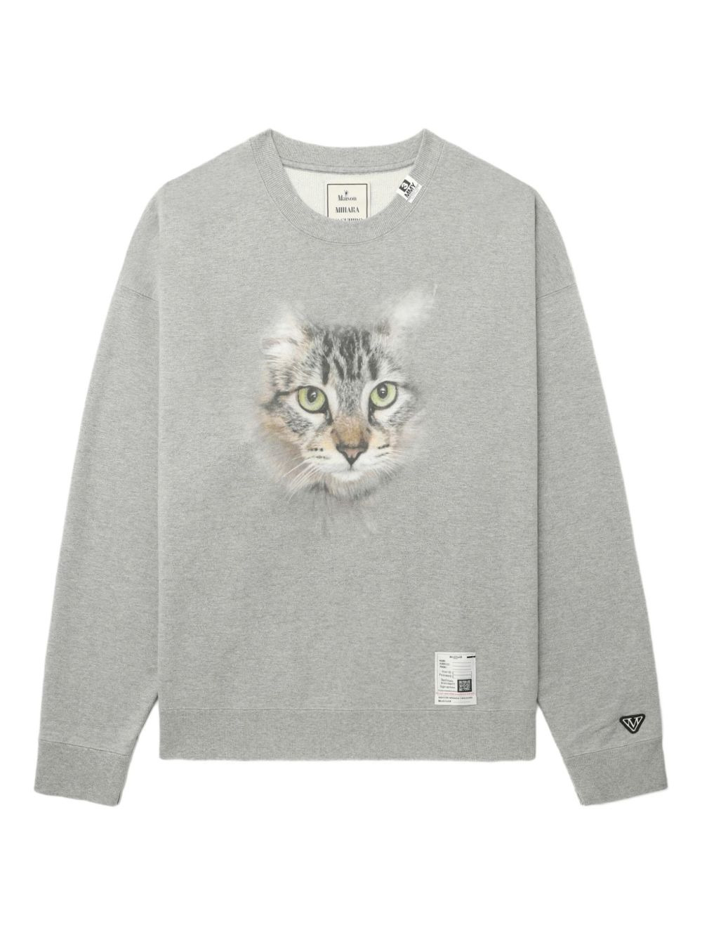 cat-print crew-neck sweatshirt Highlights - Grey - Cat print - Crew neck - Long sleeves - Cotton - Ribbed hem - Ribbed cuffs Imported Composition Cotton 100% SIZE & FIT FittingInformation Designed to be unstructured, offering a loose fit throughout Made from a midweight non-stretch fabric, this piece offers minimal elasticity when worn Washing instructions Read Manufacturer Guidelines