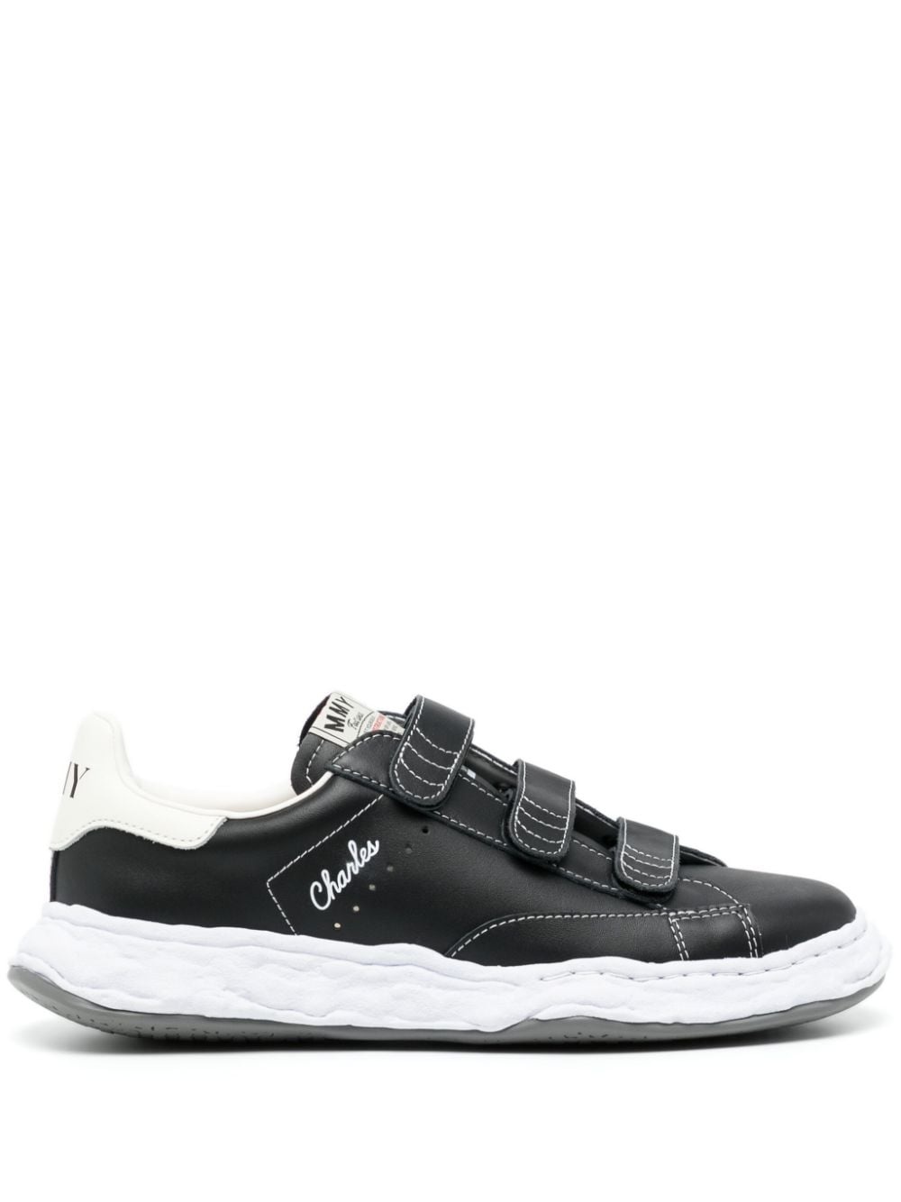 Charles leather sneakers Maison Mihara Yasuhiro's Charles sneakers are a low-top silhouette that's secured with a touch strap fastening and is distinguished by its avant-garde hand-modelled sole. Highlights - Black/white - Calf leather - Logo print to the side - Contrast stitching - Round toe - Touch-strap fastening - Logo patch at the tongue - Branded heel counter - Branded insole - Rubber sole Imported Composition Leather 100% SIZE & FIT Measurement HEEL 1.57 in(4 cm) HEIGHT 2.75 in(7 cm) Sole height 1.18 in(3 cm)