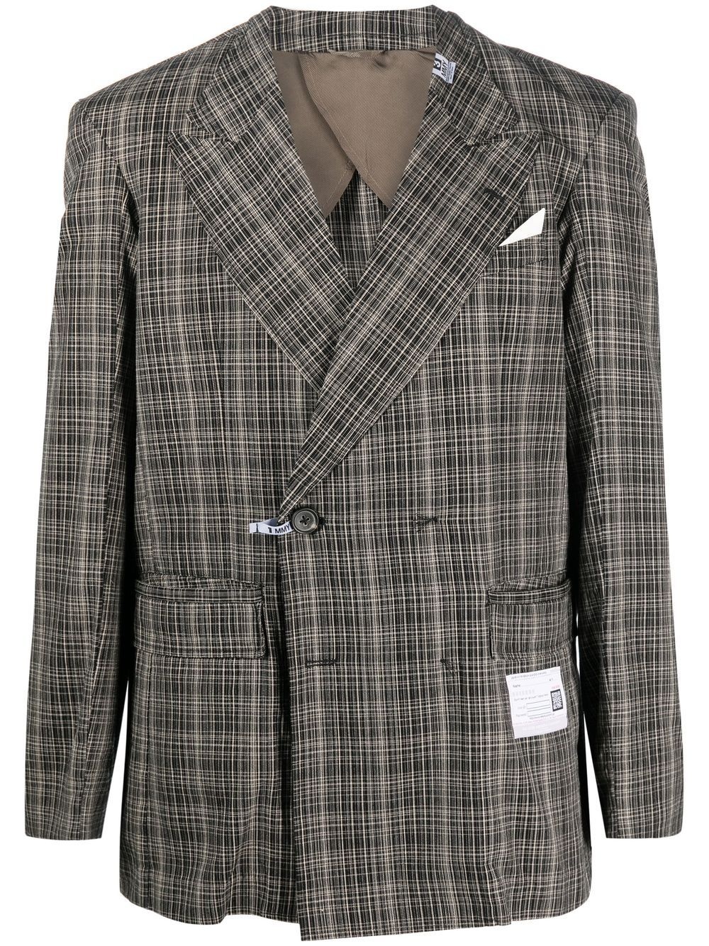 checked-pattern blazer brown/multicolour cotton-linen blend check pattern double-breasted button fastening peak lapels chest welt pocket two front flap pockets long sleeves Imported Composition Outer: Cotton 95%, Linen/Flax 5% Lining: Cupro 100% SIZE & FIT Model measurements Height 6 ft 0 in(1.84 m) Bust/Chest 35.82 in(91 cm) Hips 37 in(94 cm) Waist 28.34 in(72 cm) FittingInformation Cut for a loose fit Made with a mid-weight non-stretch fabric Washing instructions Dry Clean Only
