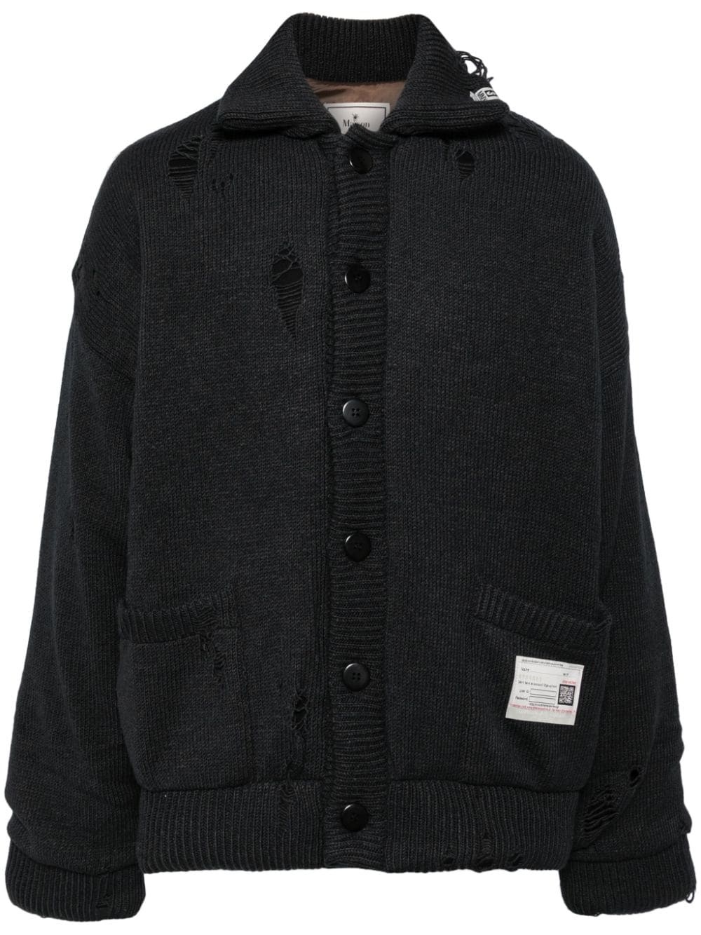 distressed cardigan Highlights - Black - Wool blend - Knitted construction - Distressed effect - Padded panels - Front button fastening - Classic collar - Two front patch pockets - Long sleeves - Ribbed cuffs and hem - Logo patch to the front - Logo tag - Full lining Imported Composition Lining: Polyester 100% Outer: Wool 70%, Acrylic 30% Filling: Polyester 100% SIZE & FIT Model measurements Height 6 ft 2 in(1.87 m) Bust/Chest 34.25 in(87 cm) Hips 36.22 in(92 cm) Waist 29.52 in(75 cm) FittingInformation Designed for an oversized fit, offering additional room throughout Constructed with additional length on the sleeve Made with a heavyweight knit, this piece offers some stretch This piece fits true to size – take your usual size Washing instructions Dry Clean Only