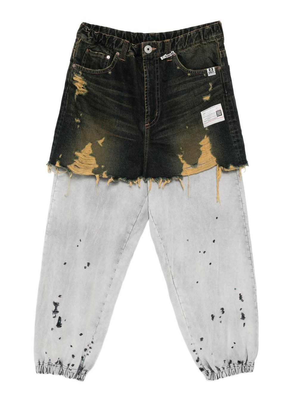 distressed cotton trouser-skirt Highlights - Indigo blue - Elasticated waistband with internal drawstring - Front button and zip fastening - Classic five pockets - Coated finish Imported Composition Cotton 100% SIZE & FIT Model measurements Height 6 ft 2 in(1.87 m) Bust/Chest 33.07 in(84 cm) Hips 35.43 in(90 cm) Waist 26.77 in(68 cm) FittingInformation Designed for a relaxed tapered leg, allowing a comfortable loose fit above the knee with a closer fit towards the calves The elasticated hem at the ankle allows for movement and a comfortable fit Made from a midweight non-stretch fabric Washing instructions Hand Wash