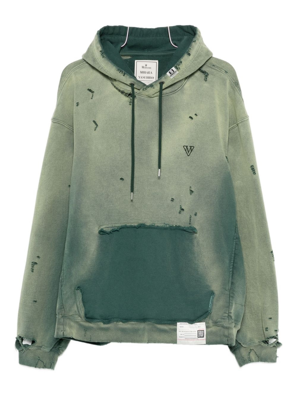 distressed-effect cotton hoodie Highlights - Green - Cotton - Distressed effect - Drawstring hood - Ribbed cuffs and hem Imported Composition Cotton 100% Washing instructions Read Manufacturer Guidelines