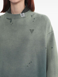 distressed embroidered sweatshirt Highlights - Green - Embroidered detail - Distressed effect - Ribbed hem and cuffs - Crew neck Imported Composition Cotton 100% Washing instructions Read Manufacturer Guidelines