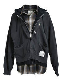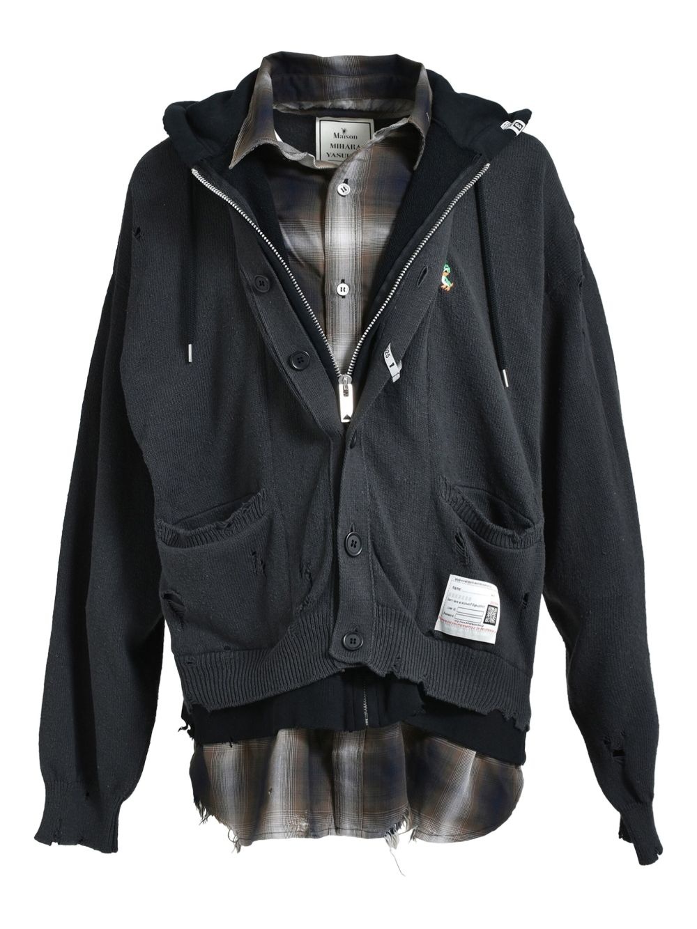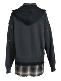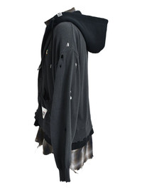 distressed hooded jacket Highlights - Black - Classic hood - Front zip fastening - Two front patch pockets - Front button fastening Imported Composition Cotton 100% Washing instructions Read Manufacturer Guidelines