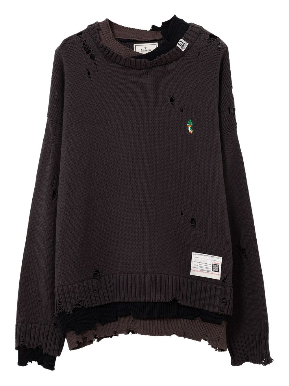 distressed layered sweater Highlights - Dark brown - Distressed detailing - Layered design - Embroidered bird motif - Raw edges - Attached label Imported Composition Cotton 50%, Acrylic 50% Washing instructions Dry Clean Only