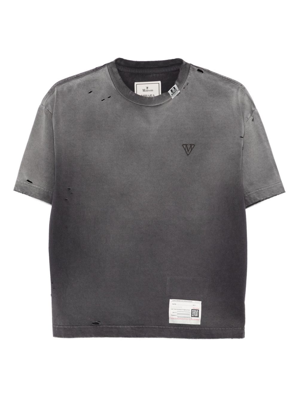distressed logo-embroidered T-shirt Highlights - Black - Distressed detailing - Crew neck - Short sleeves - Embroidered logo - Cotton fabric Imported Composition Cotton 100% SIZE & FIT Model measurements Height 5 ft 10 in(1.77 m) Bust/Chest 33.07 in(84 cm) Hips 37 in(94 cm) Waist 24.8 in(63 cm) Washing instructions Machine Wash