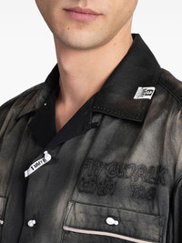 distressed shirt Highlights - Black - Front button fastening - Two chest patch pockets - Notched lapels - Short sleeves Imported Composition Cotton 58%, Rayon 42%
