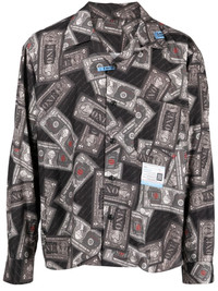 Dollar Bill long-sleeve shirt Highlights - Black - Logo patch to the front - All-over graphic print - Oversized pointed collar - Chest patch pocket - Front button fastening - Drop shoulder - Long sleeves - Buttoned cuffs - Curved hem Imported Composition Body: Rayon 55%, Cotton 45% SIZE & FIT Model measurements Height 6 ft 3 in(1.9 m) Bust/Chest 35.03 in(89 cm) Hips 36.61 in(93 cm) Waist 29.13 in(74 cm) FittingInformation Designed to be unstructured, offering a loose fit throughout Made from a midweight non-stretch fabric This piece fits true to size – take your usual size Washing instructions Hand Wash