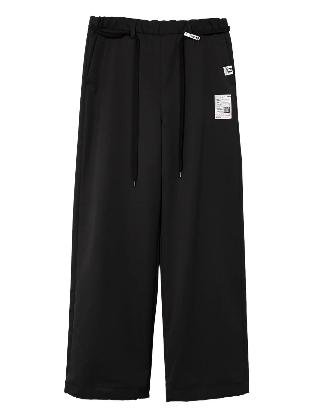 drawstring-fastening trousers Highlights - Black - Drawstring fastening - Cuffed ankles - Side pockets - Straight leg - Logo patch Imported Composition Polyester 70%, Wool 30% Washing instructions Dry Clean Only