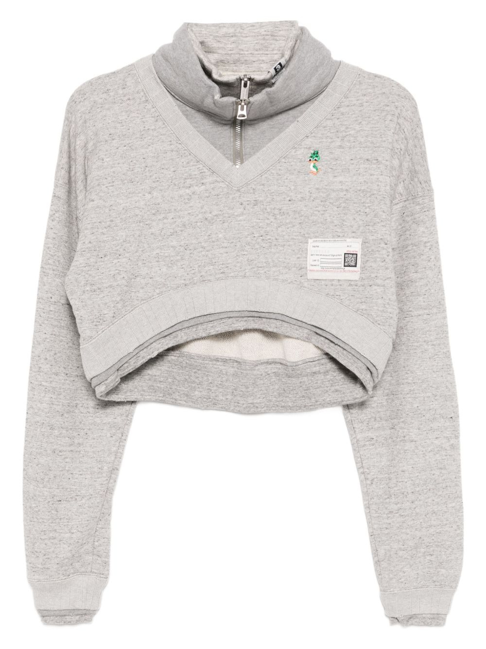 duck-embroidered sweatshirt Highlights - Light grey - Front zip fastening - Logo patch to the front - Long sleeves Imported Composition Cotton 100% SIZE & FIT Model measurements Height 5 ft 10 in(1.78 m) Bust/Chest 30.31 in(77 cm) Hips 37 in(94 cm) Waist 24.8 in(63 cm) FittingInformation Designed for a relaxed fit, this piece allows for comfort and movement when worn Cropped in length Made from a midweight non-stretch fabric, this piece offers minimal elasticity when worn Washing instructions Machine Wash