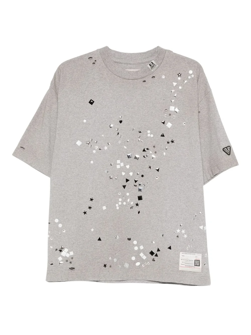 embellished distressed T-Shirt Highlights - Grey - Distressed detail - Round neck - Short sleeves - Logo patch Imported Composition Cotton 100% SIZE & FIT Model measurements Height 5 ft 9 in(1.76 m) Bust/Chest 31.88 in(81 cm) Hips 35.43 in(90 cm) Waist 24.8 in(63 cm) Washing instructions Hand Wash