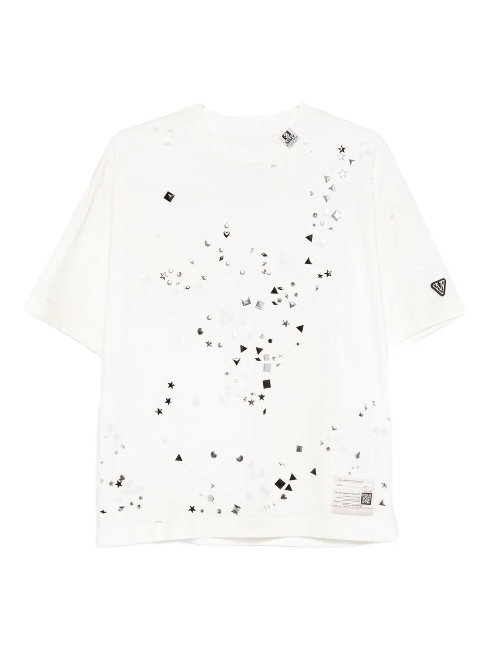 embellished distressed T-shirt Highlights - White - Distressed detail - Short sleeves - Round neck - Logo patch Imported Composition Cotton 100% SIZE & FIT Model measurements Height 5 ft 9 in(1.76 m) Bust/Chest 31.88 in(81 cm) Hips 35.43 in(90 cm) Waist 24.8 in(63 cm) Washing instructions Hand Wash