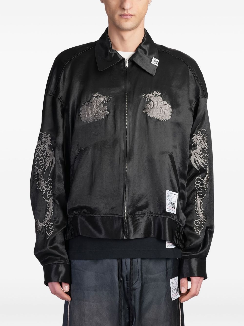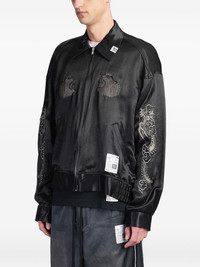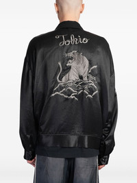 embroidered bomber jacket Highlights - Black - Front zip fastening - Logo sleeves - Side slit pockets Imported Composition Trims: Cotton 100% Body: Acetate 100% Washing instructions Read Manufacturer Guidelines