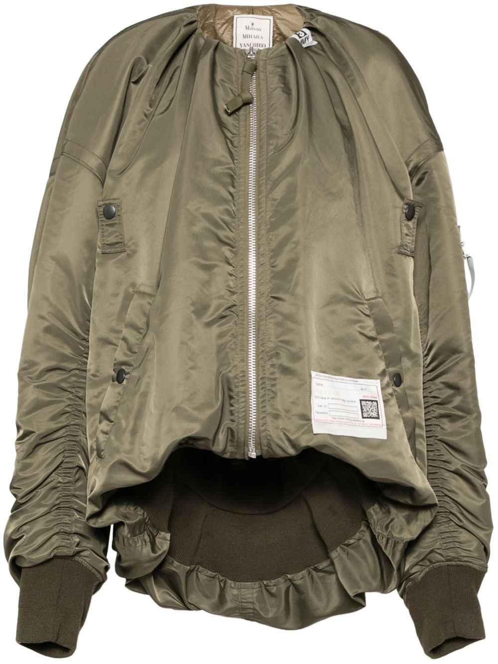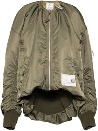 extra-long-sleeved bomber jacket Highlights - Khaki green - Front zip fastening - Double layer - Crew neck - Gathered detailing - Two front welt pockets - Extra-long sleeves - Sleeve zip pocket - Ribbed cuffs and hem - Logo patch to the front - Full lining - Internal pocket Imported Composition Nylon 100% Washing instructions Dry Clean Only