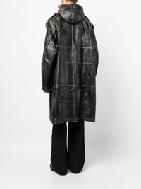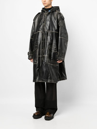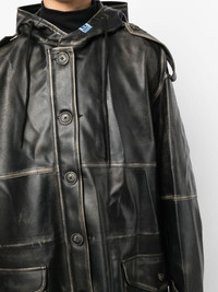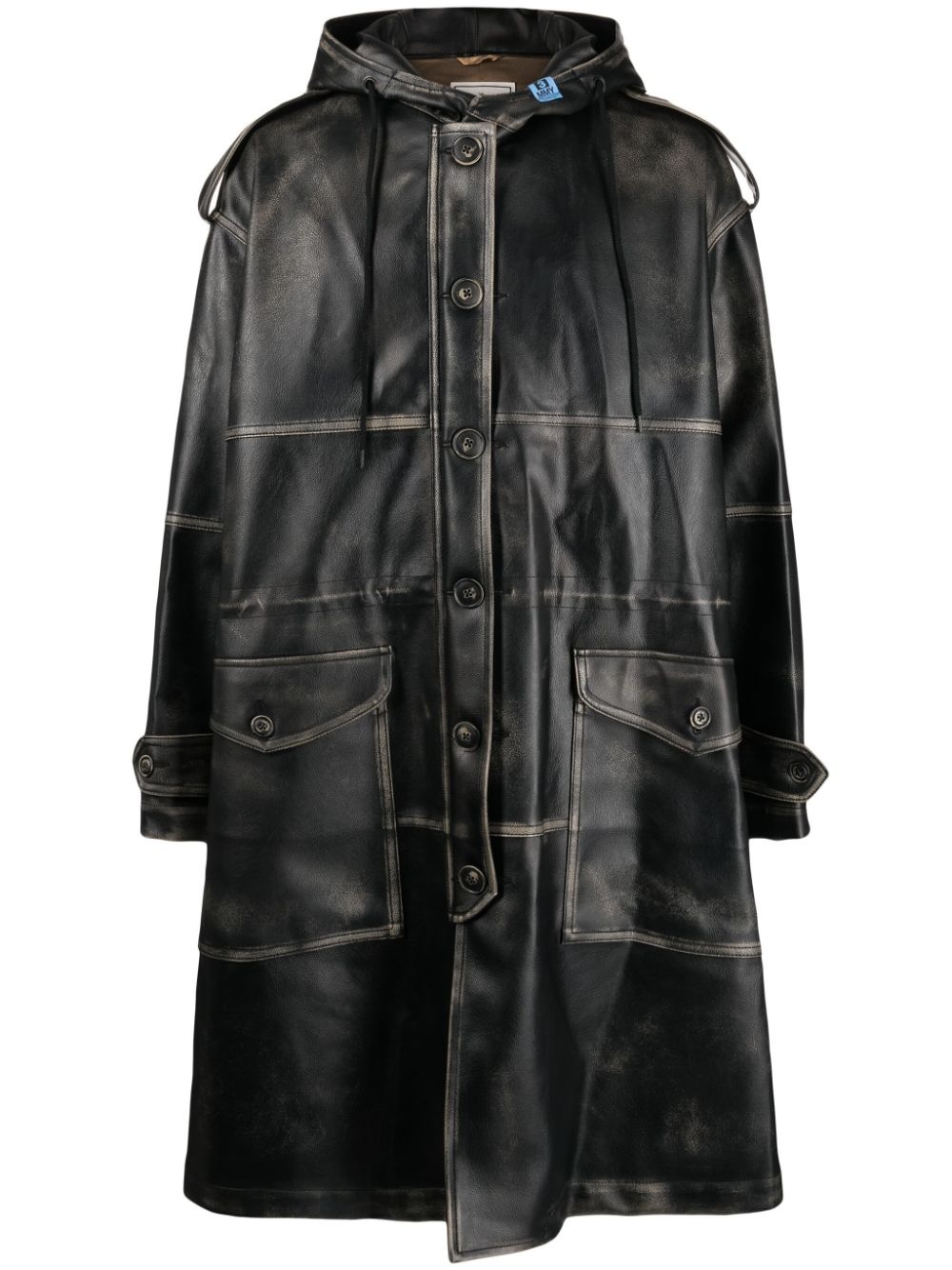 faux-leather single-breasted coat Highlights - Brown - Faux leather - Front button fastening - Two front flap pockets - Drawstring hood - Long sleeves - Mid-length - Straight hem Imported Composition Body: PVC 100% Lining: Polyester 65%, Rayon 35% SIZE & FIT Model measurements Height 6 ft 2 in(1.87 m) Bust/Chest 31.49 in(80 cm) Hips 37.79 in(96 cm) Waist 27.95 in(71 cm) FittingInformation Designed for an oversized fit, offering additional room throughout The adjustable drawstring means that you can adjust this piece’s fit to suit your comfort and preference Made from a heavyweight non-stretch fabric This piece fits true to size – if you would prefer a closer fit, take one size down Washing instructions Dry Clean Only