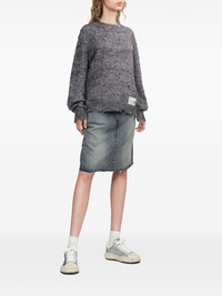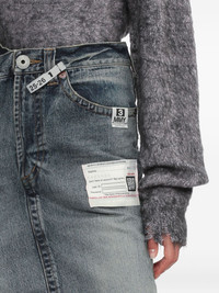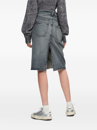 frayed denim midi straight skirt