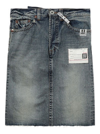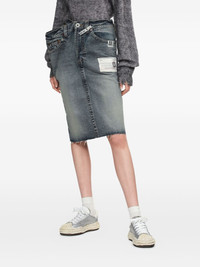 frayed denim midi straight skirt Highlights - Blue - Raw-edge hem - Centre back vent - Buttoned - Patch pockets - Five-pocket styling Imported Composition Cotton 100% Washing instructions Read Manufacturer Guidelines