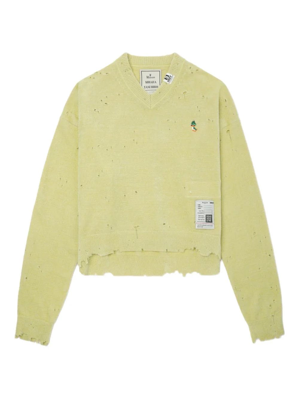 frayed V-neck sweater Highlights - Light green - V-neck - Distressed detailing - Frayed edges - Embroidered detail Imported Composition Rayon 60%, Nylon 40% Washing instructions Read Manufacturer Guidelines