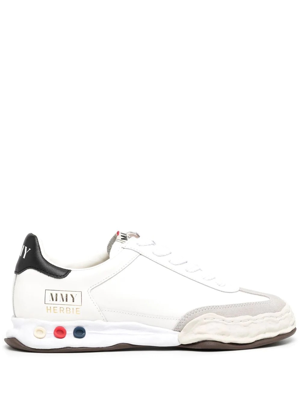Herbie OG low-top sneakers Inspired by classic tennis shoes' silhouettes, Maison Mihara Yasuhiro's Herbie OG sneakers are reimagined for AW22 in a versatile white iteration. Crafted from smooth calf leather and elevated with suede panels for added dimension, they sit atop a signature chunky rubber sole. Imported Composition Outer: Calf Leather 100% Sole: Rubber 100% Lining: Fabric 100% SIZE & FIT Measurement HEEL 1.18 in(3 cm) Sole height 0.78 in(2 cm)