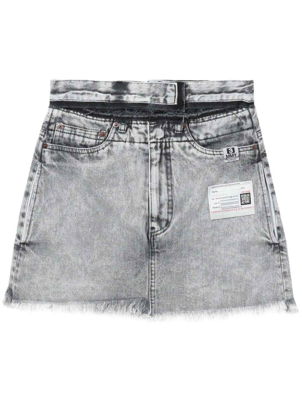 high-rise denim mini skort Highlights - Grey - Cotton - Washed denim - Frayed edge - Applique logo - Cut-out detailing - High-rise - Concealed front fastening - Two side inset pockets - Rear patch pocket - Thigh-length Imported Composition Cotton 100%