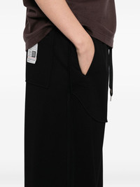 Inside-out trousers Highlights - Black - Front tie fastening - Two side jetted pockets - Two rear patch pockets Imported Composition Rayon 100%, Nylon 100%, Polyurethane 100% SIZE & FIT Model measurements Height 5 ft 10 in(1.77 m) Bust/Chest 30.7 in(78 cm) Hips 35.82 in(91 cm) Waist 21.25 in(54 cm) FittingInformation Designed with a wide-leg cut, these trousers allow for a close fit at the waist and offer a loose and roomy fit over the leg The elasticated waist allows for a comfortable fit Made from a midweight stretch fabric, this piece offers elasticity and flexibility when worn Washing instructions Machine Wash