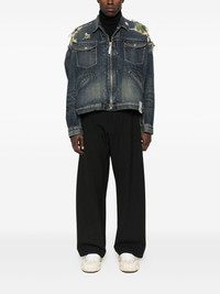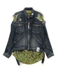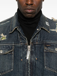 layered denim jacket Highlights - Indigo blue - Zip fastening - Frayed edges Imported Composition Polyester 53%, Virgin Wool 43%, Elastane 4% SIZE & FIT Model measurements Height 6 ft 0 in(1.84 m) Bust/Chest 35.82 in(91 cm) Hips 37 in(94 cm) Waist 28.34 in(72 cm) FittingInformation Designed to be unstructured, offering a loose fit throughout Made from a midweight non-stretch fabric Washing instructions Read Manufacturer Guidelines
