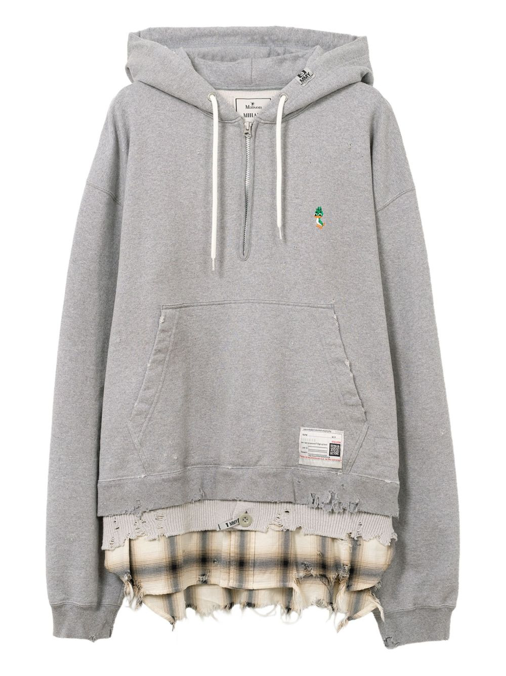 layered frayed hoodie Highlights - Grey - Half zip fastening - Distressed hem - Layered design - Embroidered details Imported Composition Cotton 100% Washing instructions Read Manufacturer Guidelines
