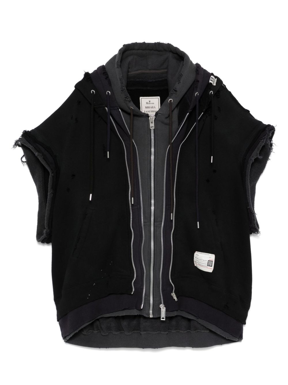 layered hooded jacket Highlights - Black - Front two-way zip fastening - Drawstring hood - Cap sleeves - Two side inset pockets Imported Composition Cotton 100% SIZE & FIT Model measurements Height 6 ft 2 in(1.89 m) Bust/Chest 36.22 in(92 cm) Hips 35.82 in(91 cm) Waist 28.54 in(72.5 cm) FittingInformation Designed for an oversized fit, offering additional room throughout The ribbed hem offers a close, comfortable fit Made from a midweight non-stretch fabric, this piece offers minimal elasticity when worn Washing instructions Machine Wash
