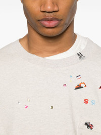 layered T-shirt Highlights - Ecru - Chest patch pocket - All-over graphic print - Stud detailing - Short sleeves Imported Composition Cotton 100%, Polyester 70%, Rayon 30% SIZE & FIT Model measurements Height 6 ft 2 in(1.89 m) Bust/Chest 36.22 in(92 cm) Hips 35.82 in(91 cm) Waist 28.54 in(72.5 cm) FittingInformation Designed for an oversized fit, offering additional room throughout Made from a midweight non-stretch fabric, this piece offers minimal elasticity when worn Washing instructions Machine Wash