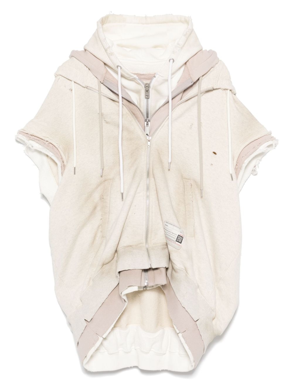 layered zip-up hoodie Highlights - Almond beige - Front zip fastening - Slouchy drawstring hood - Cap sleeves - Logo patch to the front Imported Composition Cotton 100% SIZE & FIT Model measurements Height 6 ft 2 in(1.89 m) Bust/Chest 36.22 in(92 cm) Hips 35.82 in(91 cm) Waist 28.54 in(72.5 cm) FittingInformation Designed for an oversized fit, offering additional room throughout Made from a heavyweight non-stretch fabric, this piece offers minimal elasticity when worn