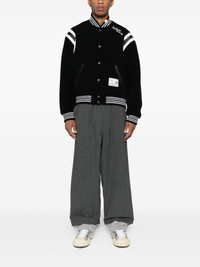 logo-embroidered bomber jacket Highlights - Black - Front button fastening - Two front welt pockets - Ribbed cuffs and hem Imported Composition Outer: Wool 70%, Polyester 30%, Acrylic 5%, Nylon 5% Lining: Cotton 58%, Rayon 42% Polyester 100% SIZE & FIT Model measurements Height 6 ft 3 in(1.9 m) Bust/Chest 35.03 in(89 cm) Hips 36.61 in(93 cm) Waist 29.13 in(74 cm) FittingInformation Designed for a relaxed fit, this piece allows for comfort and movement when worn The ribbed hem offers a close, comfortable fit Made from a padded non-stretch fabric, giving it no natural elasticity Washing instructions Dry Clean Only