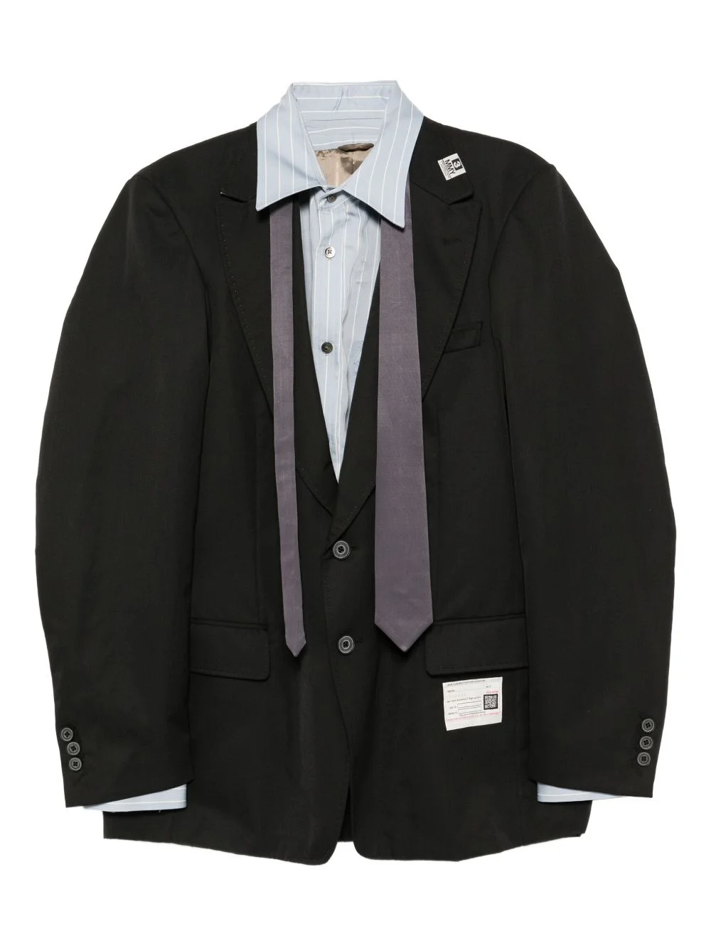 mix-layered jacket Highlights - Black - Front button fastening - Chest welt pocket - Two side flap pockets - Logo patches to the front Imported Composition Polyester 70%, Wool 30% SIZE & FIT Model measurements Height 6 ft 2 in(1.88 m) Bust/Chest 34.25 in(87 cm) Hips 34.64 in(88 cm) Waist 26.77 in(68 cm) FittingInformation Designed to be unstructured, offering a loose fit throughout The internal shoulder pads offer a structured shape Made from a midweight non-stretch fabric Washing instructions Read Manufacturer Guidelines