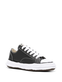 Peterson 23 OG Sole sneakers Maison Mihara Yasuhiro's Peterson 23 sneakers demonstrate the brand's avant-garde aesthetic. They’re crafted from black leather to a low-top silhouette and grounded on the brand's Original Sole: it’s hand-modelled from clay by namesake designer, Mihara Yasuhiro, hence its irregular appearance. Highlights - Black - Calf leather - Panelled design - Contrast stitching - Logo patch at the tongue - Round toe - Rubber toecap - Front lace-up fastening - Eyelet vents - Branded insole - Chunky rubber sole Imported Composition Leather 100% SIZE & FIT Measurement HEEL 1.57 in(4 cm) Sole height 1.37 in(3.5 cm) HEIGHT 2.36 in(6 cm) Washing instructions Do Not Wash/Do Not Dry Clean