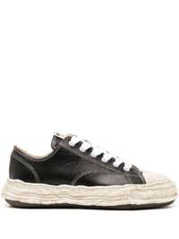 Peterson 23 Original Sole chunky sneakers Maison Mihara Yasuhiro's Original Sole evolved from a clay creation that was hand-moulded by the eponymous designer. A grained leather version defines these Peterson 23 sneakers, which boast a retro basketball-inspired silhouette. Highlights - Black/white - Leather - Grained texture - Contrast stitching - Logo patch at the tongue - Round toe - Front lace-up fastening - Chunky rubber sole Imported Composition Leather 100% SIZE & FIT Measurement HEEL 2.75 in(7 cm) PLATFORM 1.57 in(4 cm)