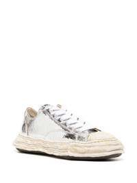 Peterson 23 Original Sole chunky sneakers Maison Mihara Yasuhiro's Original Sole evolved from a clay creation that was hand-moulded by the eponymous designer. A metallic leather version defines these Peterson 23 sneakers, which boast a retro basketball-inspired silhouette. Highlights - Silver/white - Leather - Metallic finish - Contrast stitching - Logo patch at the tongue - Round toe - Front lace-up fastening - Chunky rubber sole Imported Composition Leather 100% SIZE & FIT Measurement HEIGHT 2.75 in(7 cm) PLATFORM 1.57 in(4 cm)