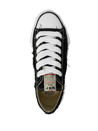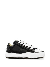 Peterson Low distressed canvas sneakers Built with a distressed effect, Maison MIHARA YASUHIRO's Peterson Low canvas sneakers showcase a contemporary twist on a classic silhouette. They sit atop the brand's signature warped rubber outsole and feature branding at the tongue and insole. Imported Composition Leather 100% SIZE & FIT Measurement HEIGHT 5.51 in(14 cm)