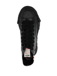 Peterson23 high-top sneakers Maison Mihara Yasuhiro's Peterson23 sneakers are infused with the brand's avant-garde aesthetic just like its predecessor model Peterson. Crafted from leather to a high-top silhouette, they are grounded on the brand's Original Sole, a rubber outsole hand-modelled by namesake designer Mihara Yasuhiro, hence its irregular appearance. Highlights - Black - Calf leather - Panelled design - Tonal stitching - Logo patch at the tongue - Round toe - Rubber toecap - Front lace-up fastening - Eyelet vents - Branded insole - Ankle-length - Chunky rubber sole Imported Composition Leather 100% SIZE & FIT Measurement HEIGHT 6.29 in(16 cm) PLATFORM 1.57 in(4 cm) CIRCUMFERENCE 9.44 in(24 cm) HEEL 1.96 in(5 cm) Sole height 1.96 in(5 cm) Washing instructions Do Not Wash/Do Not Dry Clean