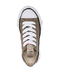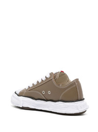 Peterson23 low-top sneakers Maison Mihara Yasuhiro's Peterson23 sneakers are infused with the brand's avant-garde aesthetic just like its predecessor model Peterson. Crafted from leather to a low-top silhouette, they are grounded on the brand's Original Sole, a rubber outsole hand-modelled by namesake designer Mihara Yasuhiro, hence its irregular appearance. Highlights - Light brown - Leather - Panelled design - Contrast stitching - Logo patch at the tongue - Round toe - Rubber toecap - Front lace-up fastening - Eyelet vents - Branded insole - Chunky rubber sole Imported Composition Leather 100% SIZE & FIT Measurement HEEL 1.57 in(4 cm) HEIGHT 2.36 in(6 cm) Sole height 1.37 in(3.5 cm)