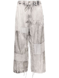 repair satin pants Highlights - Sliver grey - Drawstring fastening waist - Patchwork design - Drawstring hem - Rear jetted pocket - Two side inset pockets Imported Composition Body: Rayon 65%, Cotton 35%