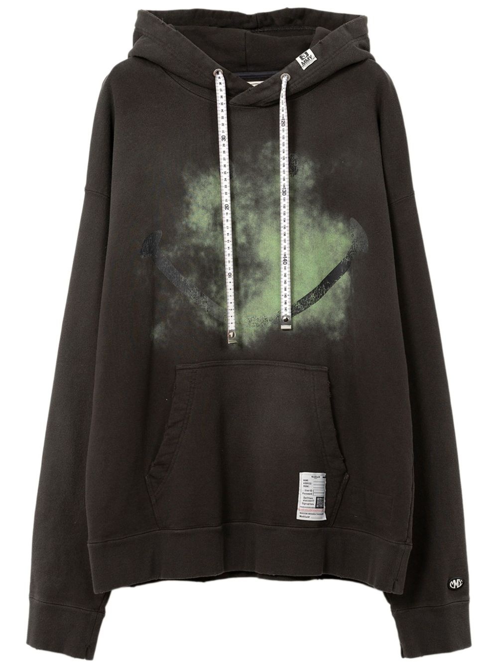 smiely face-print distressed hoodie Highlights - Black - Drawstring hood - Drop shoulder - Long sleeves - Front pouch pocket Imported Composition Cotton 100%