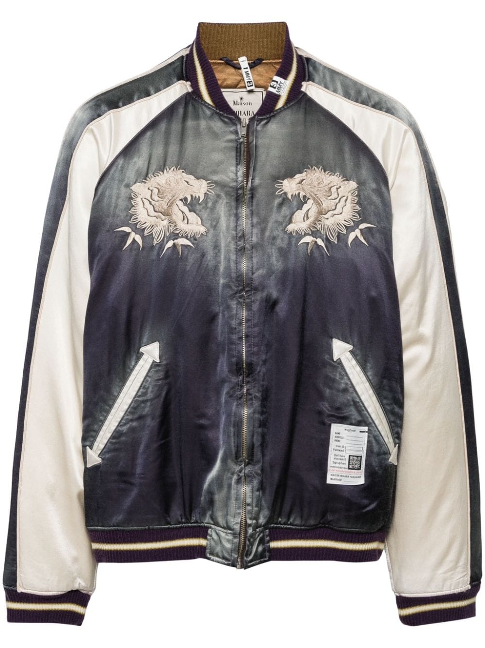 souvenir jacket Highlights - Purple/multicolor - Cotton blend - Front zip fastening - Padded design - Panel detailing - Baseball collar - Embroidered motif - Two side slit pockets - Logo patch to the front - Long sleeves - Ribbed cuffs and hem - Straight hem - Diamond-quilted lining - Internal pocket Imported Composition Outer: Cotton 58%, Rayon 42% Lining: Cotton 58%, Rayon 42% Filling: Polyester 100% SIZE & FIT Model measurements Height 6 ft 3 in(1.9 m) Bust/Chest 35.03 in(89 cm) Hips 36.61 in(93 cm) Waist 29.13 in(74 cm) FittingInformation Designed to be unstructured, offering a loose fit throughout The ribbed hem offers a close, comfortable fit Made from a padded non-stretch fabric, giving it no natural elasticity Washing instructions Dry Clean Only