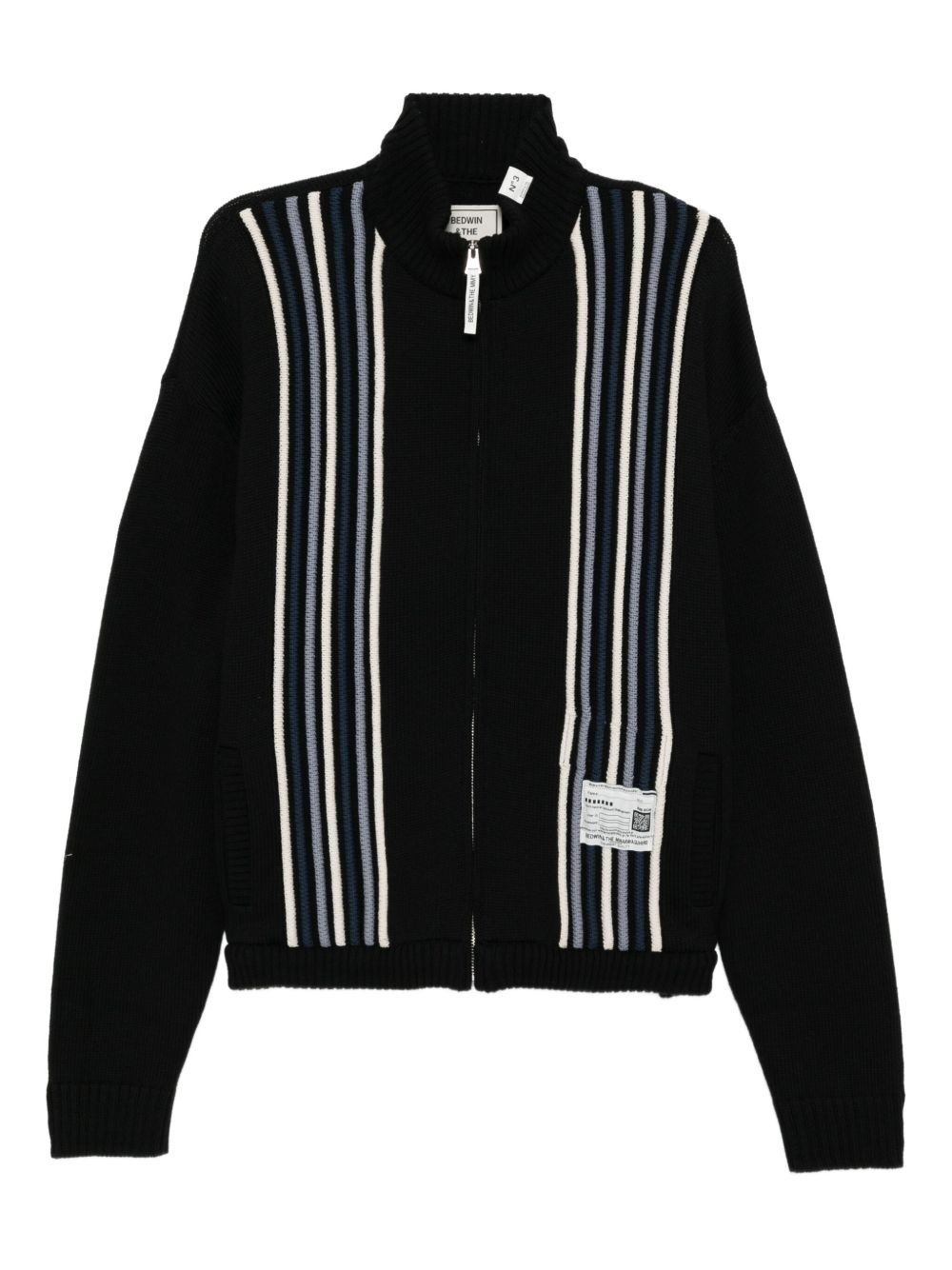 stripe-detail high-neck cardigan Highlights - Black - Front zip fastening - Two side inset pockets - Ribbed cuffs and hem Imported Composition Cotton 55%, Polyester 45% SIZE & FIT Model measurements Height 6 ft 2 in(1.87 m) Bust/Chest 33.07 in(84 cm) Hips 35.43 in(90 cm) Waist 26.77 in(68 cm) FittingInformation Designed for an oversized fit, offering additional room throughout Constructed with additional length on the sleeve Made with a midweight knit, this piece offers some stretch