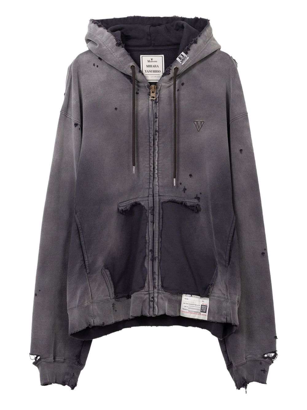 sun faded zip-up hoodie Highlights - Black - Zip fastening - Drawstring hood - Front pockets - Distressed effect - Embroidered detail Imported Composition Body: Cotton 100% Washing instructions Read Manufacturer Guidelines