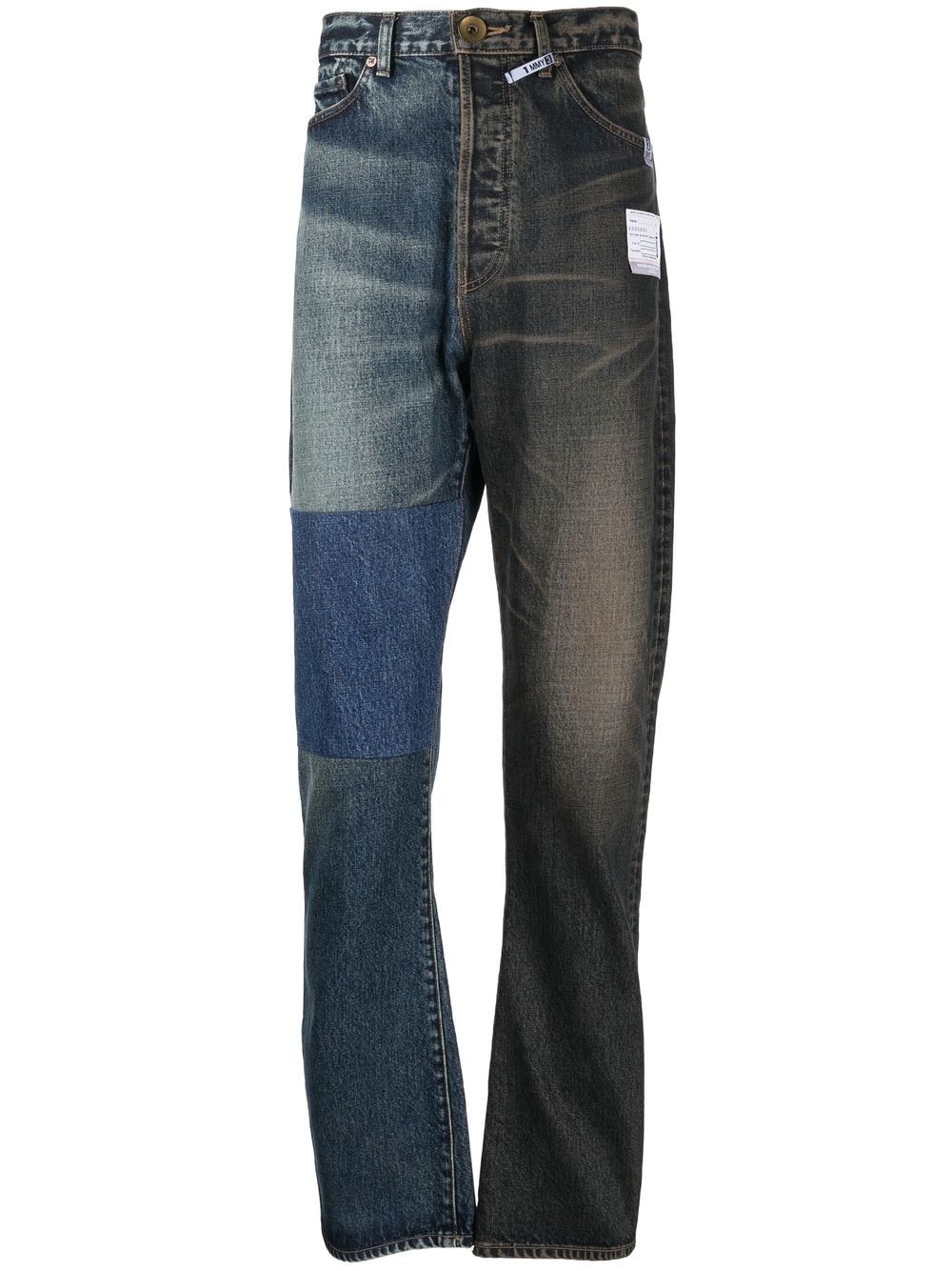 two-tone straight-leg jeans indigo blue/black cotton faded effect contrasting panel detail belt loops front button and zip fastening classic five pockets straight leg Imported Composition Body: Cotton 100% SIZE & FIT Model measurements Height 6 ft 2 in(1.87 m) Bust/Chest 36.22 in(92 cm) Hips 37.79 in(96 cm) Waist 28.34 in(72 cm) FittingInformation This piece fits true to size. We recommend you get your regular size Designed for a slim fit at the waist and loose over the leg Made with a mid-weight fabric Washing instructions Hand Wash