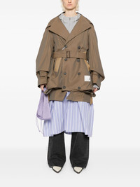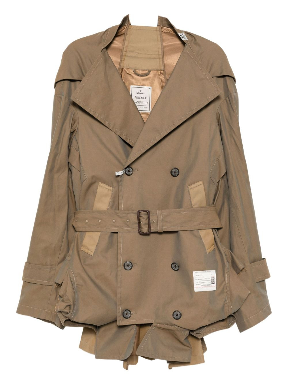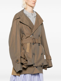 Upside Down trench coat Highlights - Camel brown - Front button fastening - Two side slash pockets - Detachable and adjustable waist belt - Cuff sleeves Imported Composition Outer: Cotton 100% Lining: Cotton 58%, Rayon 42% SIZE & FIT Model measurements Height 5 ft 10 in(1.78 m) Bust/Chest 31.88 in(81 cm) Hips 37 in(94 cm) Waist 25.19 in(64 cm) FittingInformation Designed for an oversized fit, offering additional room throughout The belt offers adjustability for fitted preferences Made from a midweight non-stretch fabric Washing instructions Dry Clean Only